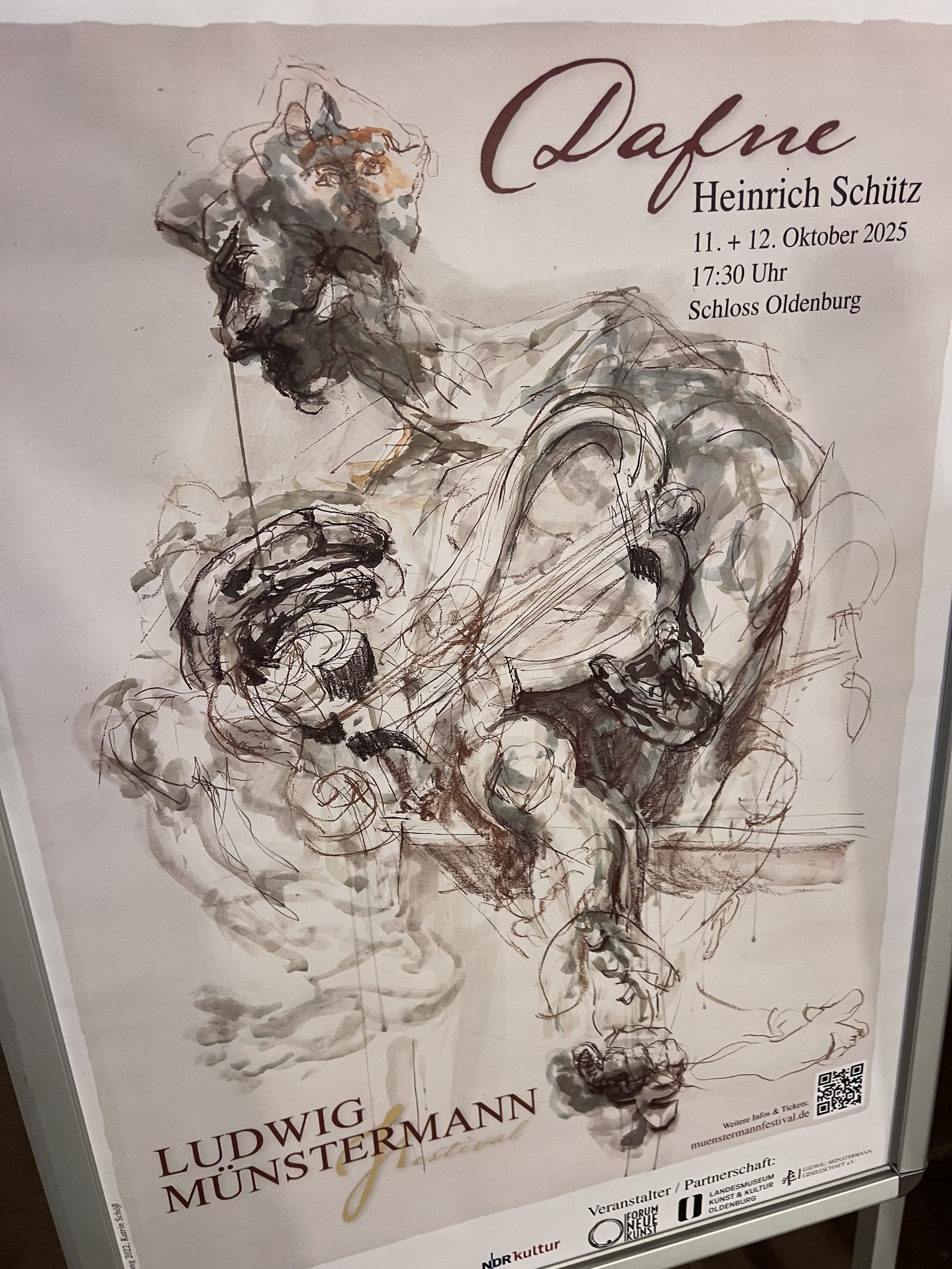 Die im Jahre 1635 lang ersehnte Hochzeit des Grafen Anton Günther bildet den Hintergrund für die Illusion, dass „Dafne“ auch in Oldenburg zur Aufführung hätte kommen können. Ein weiterer Anlass ist die Ausstellung im Landesmuseum zum Werk Ludwig Münstermanns. Er wirkte zu Schütz’ Lebzeiten im Oldenburger Land. Eine Aufführung der Oper im Festsaal des Schlosses möchte die überregional vernetzte nordeuropäisch-protestantische Kunst- und Kulturlandschaft vor Augen und Ohren führen.